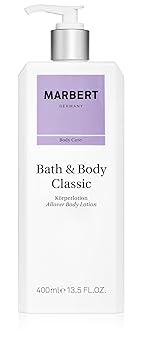 BATH & BODY CLASSIC BODYLOTION: The intensively nourishing body lotion effectively protects the skin against loss of moisture and elasticity and helps to improve the natural elasticity. The skin feels velvety soft after application and is nourished all around so that it remains healthy and supple. Ideal for daily care that delivers noticeable results and makes the skin shine. Sought-after classic: the body lotion of the Bath & Body Classic series is an absolute favourite and has been appreciated by many for years. Their proven formula and timeless fragrance make it the first choice for anyone who wants to intensively nourish and pamper their skin. High-quality ingredients: our products offer an incomparable fragrance and care experience that enriches your everyday life with luxurious moments. We rely on high-quality, nourishing ingredients that pamper and protect your skin. Our mission: develop timeless skin care that works. With over 75 years of experience, we combine tradition and innovation to create products that nourish, protect and pamper the skin every day - for a beautiful, healthy skin feeling. Our passion is the quality and satisfaction of our customers. Made in Germany: 100% made in Germany, we attach great importance to quality and responsible production. With our own research and development, we guarantee innovative care products that meet the highest standards. Product Description Marbert Care Bath & Body Classic Body Lotion, 400 ml Safety Warning none
