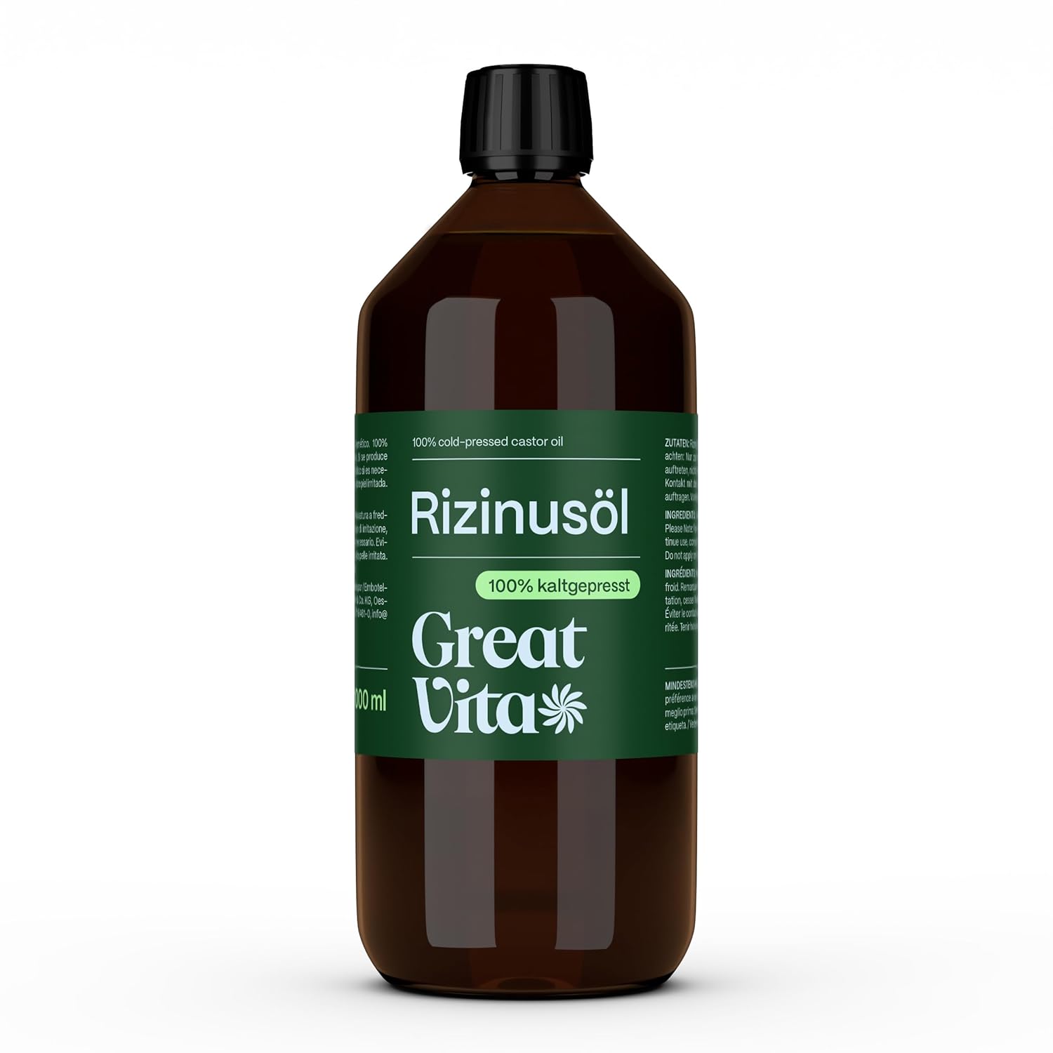 The precious oil has a transparent to yellowish colour. Castor oil provides rich nourishment for skin, hair, eyelashes and eyebrows. Castor oil is an ideal addition to daily facial and hair care. The oil makes an excellent massage oil. Can be used with or without the addition of essential oils. The oil contains many essential fatty acids and may only be used for external cosmetic use. Castor oil is obtained from the seeds of Ricinus communis, also known as the African Wonder Tree. Product Description Rub the oil into the skin and let it absorb it. The skin is tightened and wrinkles are reduced. Castor oil is said to have many health benefits as a massage oil or compress. In the Middle Ages, it was used as fuel. Since the 18th century, it has also been used medically as a laxative, today also for cosmetic purposes. From cold pressing, the seeds of the tree are first peeled and then squeezed out, results in the highest quality oil. It penetrates deep into the skin. So the oil protects the body from environmental influences. The oil is not suitable for consumption. Directions Use castor oil for skin and hair care or as a massage oil P.when('A').execute(function(A) { A.on('a:expander:toggle_description:toggle:collapse', function(data) { window.scroll(0, data.expander.$expander[0].offsetTop-100); }); }); Safety Warning Store in a cool, protected from light and