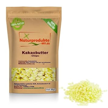 Cocoa butter chips: is a natural fat that is pressed from the cocoa bean. It is a high-quality consistency with skin-friendly properties. Cocoa butter can be used for all types of emulsions, hair care and food. Application quantity: 5 - 35% in the fat phase INCI: Theobroma cacao extract Contents: 500 g Cocoa butter chips: is a natural fat that is pressed from the cocoa bean. It is a high-quality consistency with skin-friendly properties. Cocoa butter can be used for all types of emulsions, for hair care and in the food sector. Quantity of use: 5 - 35% in the fat phase. INCI: Theobroma cacao extract