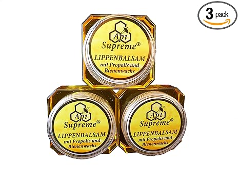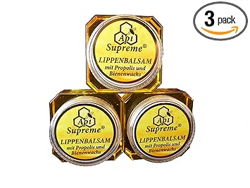 Lip balm with propolis and beeswax Good for cracked, dry and irritated lips Valuable ingredients Three 12 ml amber octagonal acrylic cans Made in Germany Product Description The high-quality lip balm is produced in Germany. Give your lips a care that makes them beautifully supple. The beeswax moisturises your lips and conjures up a pleasant soft feeling on the lip skin. The propolis also closes chapped lips and helps with healing, which is particularly pleasant in the cold season. Ingredients: petrolatum, cera alba, cetearylethyl hexanoate, perfume, glycerol soybean oil, isopropyl myristate, aqua, bisabolol, milk, propolis extract, phenethyl alcohol, lactic acid, beta carotene, ssiva sativa root extract, anisaldehyde, vanillin, potain, sistaution tocoperate, tocoperate, Topco-perate OL Directions Apply the lip balm to your lips by gently applying the product and rubbing until completely absorbed. P.when('A').execute(function(A) { A.on('a:expander:toggle_description:toggle:collapse', function(data) { window.scroll(0, data.expander.$expander[0].offsetTop-100); }); }); Safety Warning Contains perfume. May cause allergies. Stop using if irritated. Manufacturer Contact Information Bienen-Diätic GmbH, Bunsenstrasse 4, 74722 Buchen, Germany See more