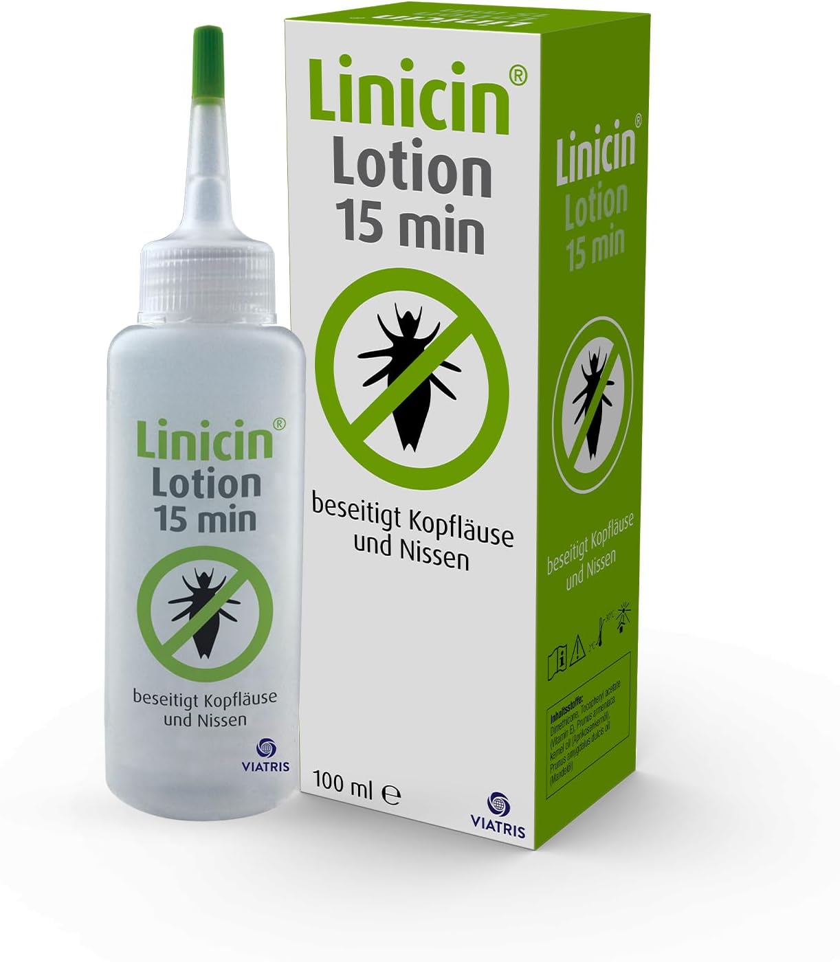 No chance for head lices: The Linicin lice agent effectively removes head lice, nits and larvae from the scalp of children and adults within a short time. No resistance formation of lice possible, as linicin acts on the lice respiratory system. Quick and effective: Our lice remedy is quick to use and requires a reaction time of only 15 minutes for reliable results. The lice treatment is completed by a repeat treatment after 9–10 days. Soft and gentle: Our lice agent is free from insecticides, alcohol and dyes or fragrances and thus protects the scalp especially of children. It can be used by the whole family (children over 1 year) as it has a physical approach. Odourless and colourless: The Linicin lotion is odourless and colourless and guarantees a pleasant head feeling after use. Product Description Linicin lotion is the lice agent for treating head lice, nits and larvae and protects the scalp. The lotion is quick and effective to use and free from insecticides. Odour and colourlessness guarantee a pleasant head feeling after use. It can be used for adults and children over 1 year. Head lice cannot develop resistance to linicin lotion, as linicin lotion contains no insecticides, but acts on the lice respiratory system. Head lice are wingless, blood-sucking insects. These parasites feed on human blood. Head lice and nits (lice eggs) are often located behind the ears, along the hairline and in the neck, as these areas are warm and dark. The colour of a louse can vary from sand to almost black. After sucking blood, they turn dark red. An adult head louse is 2–