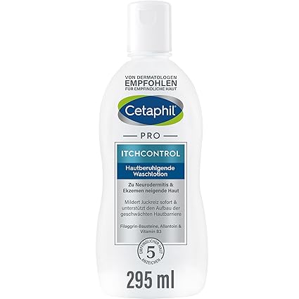 CETAPHIL PRO ItchControl Hautberuhigende Waschlotion, 295ml, Für zu Neurodermitis & Ekzemen neigende Haut, Reinigt sanft schäumend, spendet intensiv Feuchtigkeit, Auch für sensible Baby- & Kinderhaut