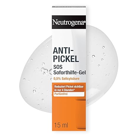 First aid for pimples: Oil-free, fast absorbing gel with clarifying salicylic acid to reduce pimples and impurities. Results after application: Reduces the size of pimples and redness in just 4 hours, instant help from the 1st application without drying out the skin. Easy to use: Apply the gel directly to the pimple, apply daily morning and evening, avoid eye contact - stop use if skin irritation occurs. Easy dispensing. Box contents: 1 x Neutrogena Anti-Pimple SOS Instant Relief Gel, for pimples and blemishes, 24 g Product Description Healthier looking skin in just 1 week*: The Neutrogena anti-pimple SOS instant aid gel in a new design cleans pores thanks to targeted exfoliating effect and gives healthier-looking skin in just 1 week*. The fast-absorbing anti-pimple gel with 0.5% salicylic acid (BHA) helps to support the skin's natural renewal process and cleanse clogged pores to make them appear less visible. In addition, the gel has been scientifically proven to visibly reduce the size of pimples and redness in just 4 hours*. Application: apply the oil-free and dermatologist-developed pimple remover gel with a pH value of 4 in the morning and evening directly to the desired place, avoid contact with the eyes. (*Scientific study with 32 participants) Directions Apply directly to the pimple morning and evening. Avoid contact with eyes. Discontinue use if skin irritation occurs. P.when('A').execute(function(A) { A.on('a:expander:toggle_description:toggle:collapse', function(d