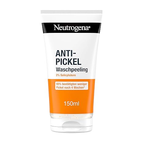 This oil-free scrub with natural cellulose exfoliating particles cleanses the skin, promotes natural skin renewal and helps promote the natural skin renewal process. Also suitable for sensitive skin. Scientifically confirmed: it helps from the 1st day to eliminate even stubborn pimples and maintains the skin protection barrier. This makes the skin more resistant to new pimples - for a cleaner, more even complexion. Easy to use: use once a day. Wet face. Apply scrub to hand, lather with water and gently massage on face. Then wash thoroughly with water. The tube can be easily opened and closed even in the shower with the practical hinged lid. The amount can be easily dosed. It is recommended to use a day Box contents: 1 x Neutrogena anti-spot wash scrub, with clarifying salicylic acid, 150 ml, item no. 90606 Product Description Gentle facial cleansing for immediate results: the Neutrogena anti-pimple wash scrub leaves a soft and smooth skin feeling and is also a gentle facial cleansing for immediate results. The clarifying anti-pimple scrub in a new design exfoliates to refine the complexion, contains 2% salicylic acid (BHA) to eliminate pimples, helps scientifically proven to prevent new pimples and has a gentle pH value of 4. In addition, the facial scrub for blemished skin was developed with dermatologists and 93% of testers confirmed fewer pimples after 4 weeks**. In addition, the gently cleansing facial care in a fully recyclable tube helps to matte and contains 29% less plastic. (*Sebum measurement on 37 testers: inside) (**Scientific evaluation with 31 t