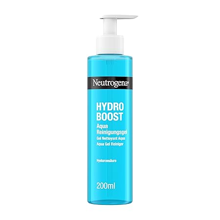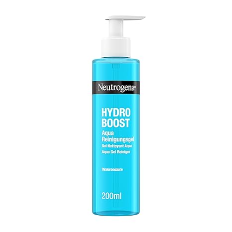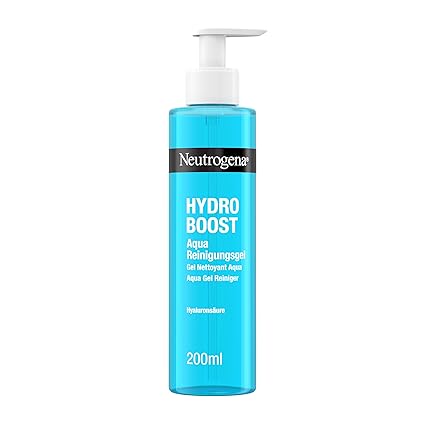 With hyaluronic acid and glycerine - The gentle facial cleansing has been developed with dermatologists and is enriched with ingredients that occur naturally in the skin, such as hyaluronic acid and glycerine SUITABLE FOR ALL SKIN TYPES - The cleansing gel is suitable for all skin types and is gentle on the skin barrier, in addition, the oil-free formula does not clog pores and improves skin hydration all day long Effectively cleanses the skin of dirt, sebum and make-up - The face care wash gel effectively cleanses the skin of dirt, sebum and make-up. Directions for use: Apply to damp face and lather, then wash thoroughly Box contents: 1 x 200 ml Neutrogena Hydro Boost Aqua cleansing gel, gentle facial cleansing to remove excess make-up & dirt with moisturising hyaluronic acid & glycerine for all skin types Product Description Neutrogena Hydro Boost Aqua Cleansing Gel gently cleanses to remove excess makeup and dirt. The mild formula has been developed together with dermatologists and contains moisturising ingredients such as hyaluronic acid and glycerin, which are naturally found in the skin. Suitable for all skin types, the gel supports the skin barrier and ensures long-lasting hydration throughout the day. The oil-free texture does not clog pores and contributes to the vitality of the skin. Apply to damp face, lather and wash thoroughly. Directions Lather in hands with water, apply to damp face and massage gently. Wash thoroughly. P.when('A').execute(function(A) { A.on('a