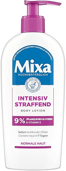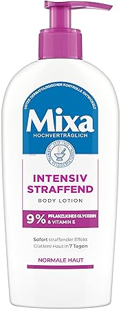 item_display_weight; 0.247 kg. Product Description The Mixa Intensive Firming Body Lotion is particularly suitable for normal and weakened skin. So the skin looks visibly smoother in just 7 days. Vegetable glycerine moisturises normal skin and hydrates you sustainably and long-lasting. Vitamin E is known for its antioxidant properties and reduces the influence of free radicals. In addition, vitamin E ensures firmer, elastic skin. At the same time, normal skin is immediately tightened and looks wonderfully even. The intensively firming texture does not grease and prevents loss of elasticity and elasticity. The formula gives the skin a smooth look and provides a gentle skin feeling. Manufacturer Contact Information 30, Rue d'Alsace FR-92300 Levallois-Perret