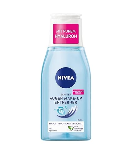 Gentle cleaning - The NIVEA eye make-up remover gently frees the sensitive eye area from make-up and is also suitable for contact lens wearers. Removes make-up - Mascara and even dark eye make-up can be removed particularly thoroughly and gently with the mild make-up remover. Non-greasy - The facial cleansing with provitamin B5 cleans the skin around the eyes particularly gently and leaves no greasy skin feeling. Skin and environment - The bottle is made from 96% recycled material (without cap and label). The compatibility is dermatologically and ophthalmologically tested. Box contents and details: NIVEA gentle eye make-up remover, 125 ml, gently and thoroughly removes eye make-up, item number 94451 Product Description NIVEA Gentle Eye Make-Up Remover - Thoroughly Removes Mascara & Make-Up The NIVEA gentle eye make-up remover with provitamin B5 cleans the sensitive eye area and thoroughly removes mascara and make-up. Its formula is non-greasy and also suitable for contact lens wearers. The compatibility of the NIVEA make-up remover is dermatologically and ophthalmologically tested. Application: Apply the lotion to a cotton pad and gently clean the eye area from the inside out. The product advantages in detail: Thoroughly removes mascara and make-up Suitable for contact lens wearers 96% recycled bottle (without cap and labels). Gentle and thorough cleaning of the eye area. Manufacturer Contact Information Unnastraße 48, 20245 Hamburg