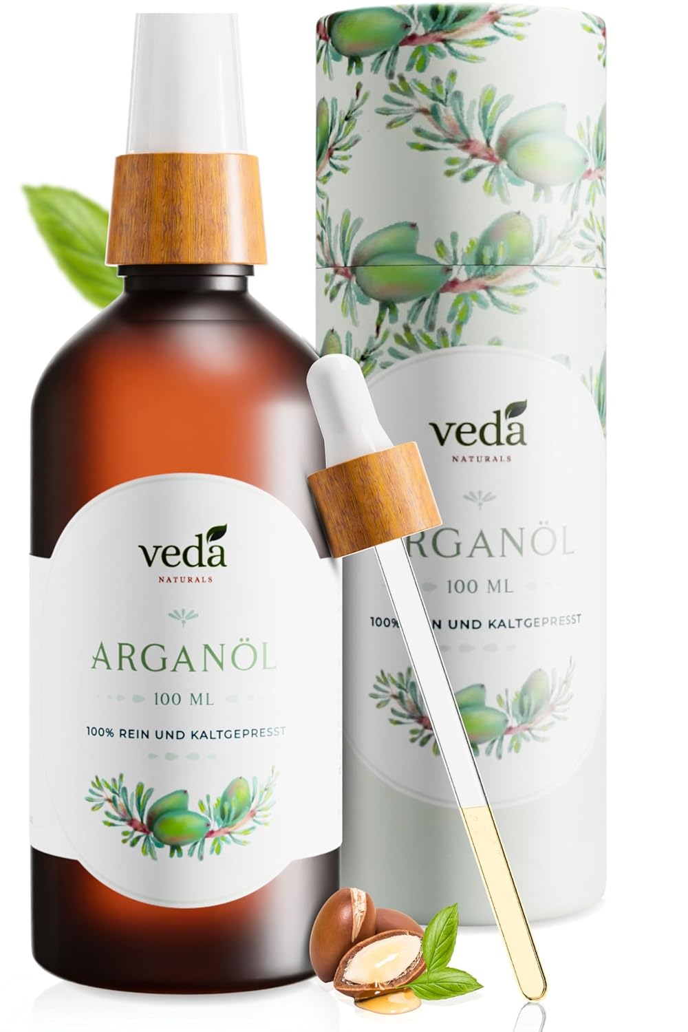 Superfood: Argan oil derived from the seeds of the argan tree comes from Morocco and is also referred to as "liquid gold". Natural cosmetics: the argan oil (Argania Spinosa Kernel Oil) is 100% pure and cold pressed. No parabens, silicones, microplastics. ✅ FACIAL CARE: Argan oil can be used alone or together with other products as a natural moisturiser. Hair care: as a natural leave-in conditioner, as a hair oil or hair mask. Proven quality: the natural oils from Veda Naturals are 100% natural. PETA-Approved Vegan, Cruelty Free (Cruelty Free) & Cosmos Natural certified. The Cosmos Sigel is a guarantee of natural cosmetics that you can trust. Plastic-free in the 100 ml glass bottle.