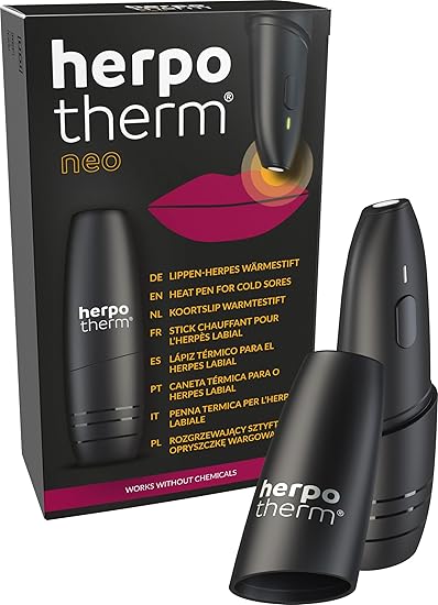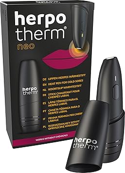 Made in Germany - Herpotherm Neo is a patented medical device for the local treatment of accompanying symptoms of cold sores (herpes labialis) such as pain, burning, tingling, itching or tension. For lip herpes - quick aid at the touch of a button - clinically tested and proven with studies. Very good compatibility. The Herpotherm Neo – can prevent the formation of herpes sores if used in time. If used later, a lighter course or an earlier healing can be achieved. HOHE WIRKSAMKEIT MIT Herpotherm QUALITÄT - WIRKT AUSSCHLIESSLICH MIT KONZENTRIERTER WÄRME Der Herpotherm enthält zwei hochwertige AAA-Batterien. - Heat pen - batteries included (replaceable) - Up to 200 applications possible on one battery charge. Dermatologically tested medical product – durable alternative to creams and patches. Treat herpes without noticeable herpes cream, herpes ointment or herpes patches. Chemical-free – suitable for pregnant women, allergy sufferers and children (* Suitable from 3 years. Self-use from 12 years) - The electronic herpes pen - works exclusively with concentrated heat and therefore completely chemical-free.