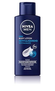 With fresh kick - The NIVEA MEN body lotion for normal skin is non-greasy and absorbs quickly. Skin compatibility is dermatologically tested. Revitalising skin care - With vitamin E and revitalising formula, the body lotion provides the skin with an extra dose of freshness - all day long. 72H care - The body lotion with refreshing care formula provides the skin with 72 hours of care and gives a visibly smoother and refreshed skin feeling. Smooth skin - The body lotion ensures healthy-looking skin. It contains no parabens and its skin compatibility is dermatologically tested. Box contents and details: NIVEA MEN body lotion revitalising, 250 ml, lotion with vitamin E for normal skin, moisturises for 72 hours, item no. 80255 Product Description " NIVEA MEN body lotion revitalising - 72h care and extra freshness kick. For men looking for an extra fresh kick: here it is - the NIVEA MEN revitalising body lotion! The non-greasy formula is enriched with vitamin E. It revitalises the skin and instantly provides it with an extra dose of freshness - all day long. The masculine fragrance of the men's body lotion also pampers the senses. With moisture power and 72-hour care, the Nivea cream ensures healthy-looking skin. A skin care effect that you can feel, see and smell. The NIVEA MEN Revitalising Body Lotion is a moisturiser for daily use. Skin compatibility is dermatologically tested. We use our over 100 years of experience in skin care to carefully select all ingredients according to our Nivea quality standards. Application: The revitalising body lotion for men is sui