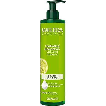 24 hour moisture: the light texture of the citrus body lotion provides the skin with immediate moisture for up to 24 hours. The body care lotion absorbs quickly into the skin and thus allows immediate dressing after application FOR ALL SKIN TYPES The vegan care lotion can be used for all skin types. While organic aloe vera gel moisturises and refreshes the skin, organic coconut oil, shea butter and organic sunflower oil supports the skin barrier and ensures a nourished skin feeling Fragrance from home perfumers: the fragrance compositions with 100% natural fragrance raw materials (essential oils and/or plant extracts) provide a fresh and invigorating fragrance. The citrus scent of sun-ripened lemon, Litsea Cubeba & Petitgrain awakens the senses and invigorates the mind Highest Weleda quality: the nourishing body lotion contains only ingredients of 100% natural origin, is vegan and free from synthetic fragrances, dyes and preservatives as well as raw materials based on mineral oil. Skin compatibility and effectiveness is dermatologically tested and confirmed. Microbiome friendly Box contents: 1 x Weleda hydrating citrus body lotion for care of all skin types - natural cosmetics unisex body lotion with refreshing fragrance for women and men Product Description Weleda Organic Hydrating Body Lotion Immediately moisturises and nourishes the skin noticeably soft and smooth Give your skin an intense moisture kick with the hydrating body lotion from Weleda. The hydrating body lotion absorbs quickly and leaves no sticky skin feeling. Its fresh scent of sun-ripened lem